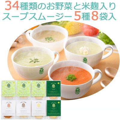 【16日9:59までポイント4倍★】34種のやさい畑スープスムージー5種(蓮根とほうれん草、蓮根とゆず、とうもろこし、エビとトマト、たっぷりキノコ) 8個入りギフト【エムエム・スープ】【国産34種類の野菜と米麹入】Maazel Maazel(マーゼルマーゼル)