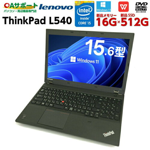 【お買い物マラソン限定!最大10%OFFクーポン配布中】中古パソコン 中古ノートパソコン Windows10 Lenovo ThinkPad L540 第四世代 Corei5 新品SSD SDカード 無線 Wifi USB3.0 対応 Office付 中古動作良好品【送料無料】