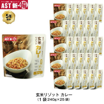 5年保存 非常食 AST 新・備 玄米リゾット カレー味 ごはん アレルゲンフリー 25袋セット 玄米リゾットだからヘルシー&美味しい! ●そのままでもすぐ、美味しい! 国内産の玄米を使用し、とことん素材と味にこだわった「カレー味」。