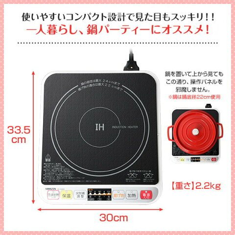 [山善] 卓上 IHクッキングヒーター IH調理器 1000W ホワイト YEL-S100(W) [メーカー保証1年]