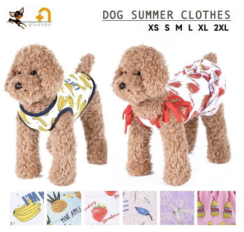 送料無料ペットウェア 犬服 イヌ 小型犬 ベスト ワンピース ノースリーブ タンクトップ フリル 紐 リボン 無地 プリント トロピカル柄 フルーツ パイナップル バナナ イチゴ ホワイト 白 可愛い カジュアル かわいい リゾート 旅行 お出かけシーン