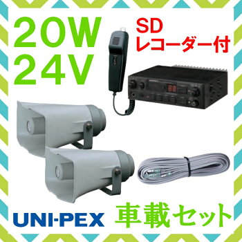 拡声器 ユニペックス 20W SD付車載アンプ スピーカー 接続コード セット 24V用 NDS-204A CK-231/15×2 LS-404
