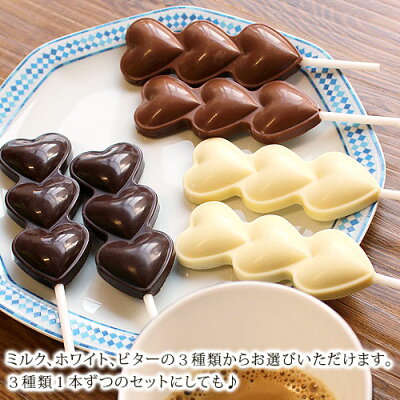 1本からお好きな数をご注文いただくことができますのでき、ミルク、ホワイト、ビターの3種類の中からお好きな味をお選びください。