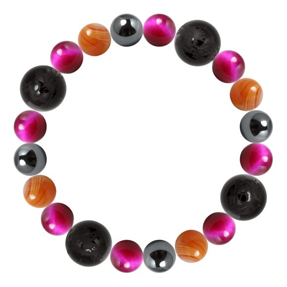 こちらのデザインは、大粒14mmの四神ブラックオニキスに、ピンクタイガーアイとサードオニキスを組み合わせました。