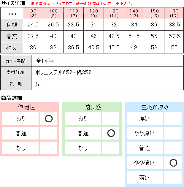 仕様 大きさ 90cm〜160cm ※当店の採寸についてはこちら 素材 ポリエステル65%・綿35% 裏地 ありません 生地の伸縮 あります 生産国 中国 カラー 【00055vrf】OFF-WHITE(オフホワイト) 【00055vrf】LIGHT-GRAY(ライトグレー) 【00055vrf】MUSTARD(マスタード) 【00055vrf】ROSE(ローズ) 【00055vrf】DARK-ORANGE(ダークオレンジ) 【00055vrf】GREEN-BLUE(グリーンブルー) 【00055vrf】DARK-GREEN(ダークグリーン) 【00055vrf】DARK-BEIGE(ダークベージュ) 【00055vrf】WINE(ワイン) 【00055vrf】NAVY(ネイビー) 【00055vrf】C-GRAY(杢チャコールグレー) 【00055vrf】BLACK(ブラック) 【00055vrf】NAVYxWHITE(ネイビーxホワイト) 【00055vrf】GRAYxBLACK(杢グレーxブラック)※撮影時の光の具合、またお客様のページをご覧になられるパソコンの環境により、実際の商品と多少異なって見える場合がございますがご了承下さい。